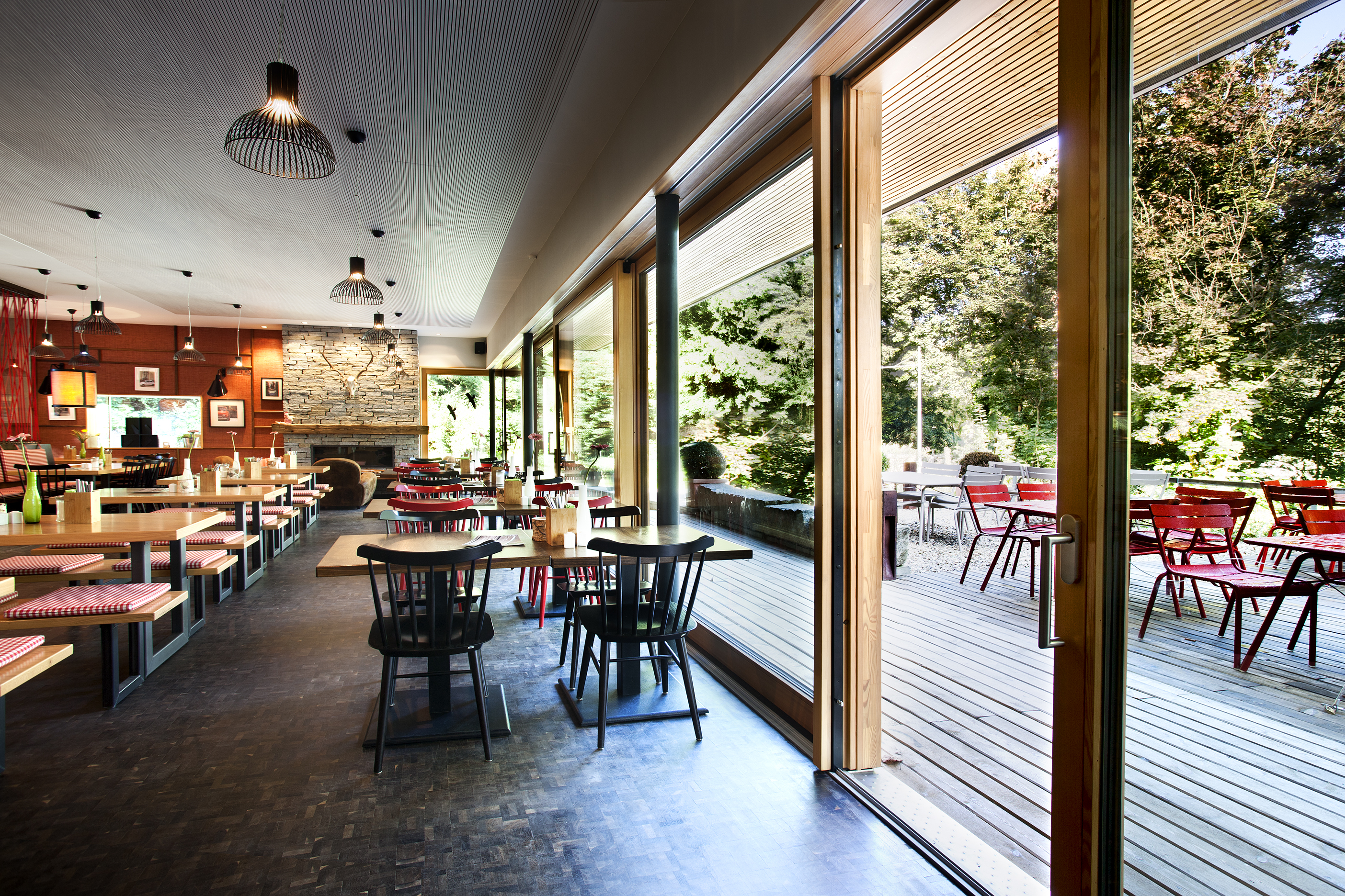 Gebäudeart: Geschäftsbauten: Kaffeehäuser Objekttyp: Neubau Konstruktionen: Hebeschiebekipptüren Systeme: HF 82 Effizient-Profilsystem |